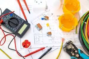 Electrical repair tools in the house. Selective focus.